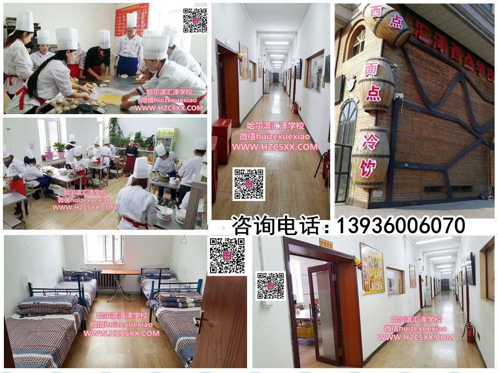 黑龙江汇泽职业培训学校,(培训内容:西点、中式主食、裱花、烘焙、冷热饮品、西式快餐),是经黑龙江省人力资源和社会保障厅批准的正规技能培训学校,学校以科学管理、严谨教学为宗旨,集学习、实习、操作、上岗就业为一体,全天授课,全部实践为主,面向社会常年招收西点班,面点班学员。来我校学习签订法律合同:5年以上的就业安排(不限次数),学不会,学不扎实,免费学习下期,学会为止,终身免费进修。学员毕业由学校推荐安置工作,并协助及提供服务,帮助学员创业开店 。